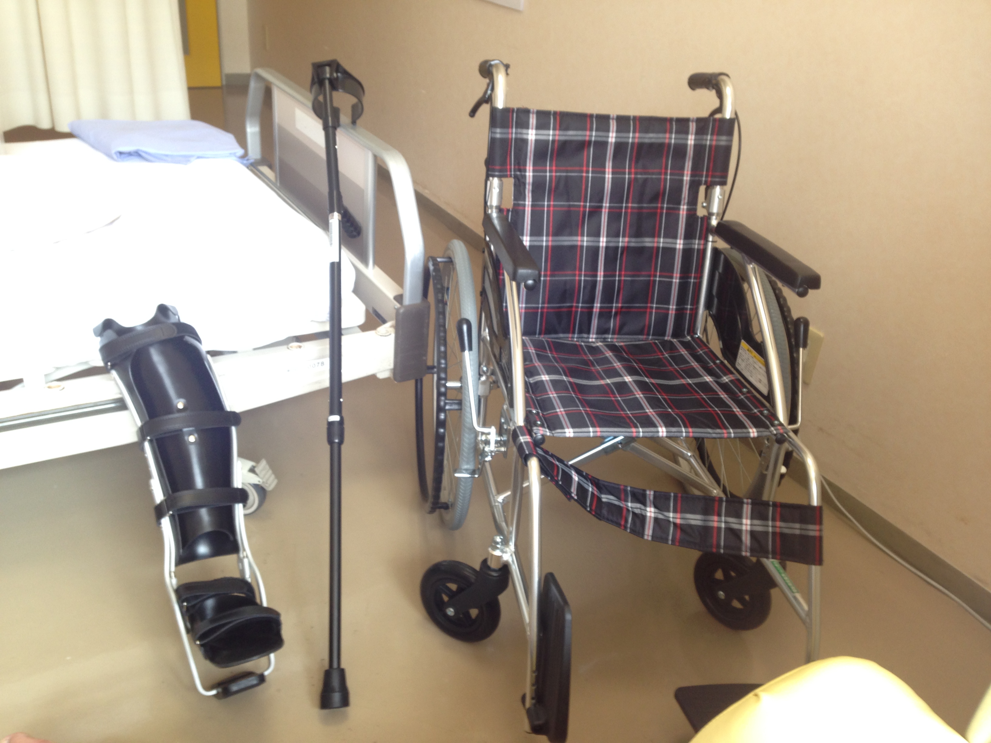そろそろ退院します。車いすとか歩行グッズなどレンタル 2015年6月4日2015年6月4日 カテゴリー: PTB装具・ロフスト・入院・車いす. 左から、 ・オーダーメイドのPTB装具:購入8万円くらい ・ロフスト(うでをはめる輪っかの着いた杖) :レンタル、500円/月 ・車いす:レンタル、2,500円/月 ・レンタル品の配達料:1,000円/月 すべて相手側(加害者)の加入保険より支払いとなりました。(PTB装具は、業者さんから保険会社さんへ請求、レンタル品は立替) こちら以外でも、お風呂での転倒防止のため、シャワーチェアも保険内で購入となりました。(主治医の先生に書類を書いてもらって必要を証明してもらってます