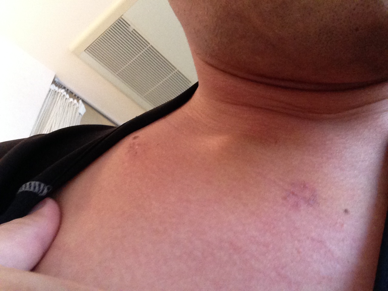 鎖骨の傷は完全に塞がって跡の様になっています。