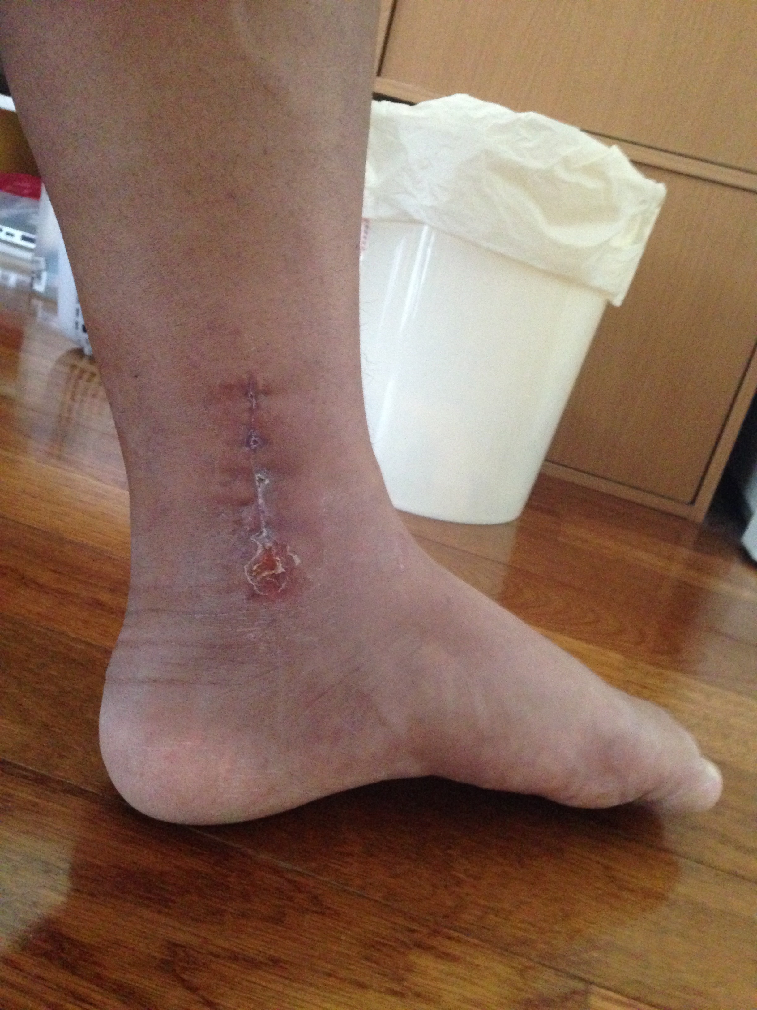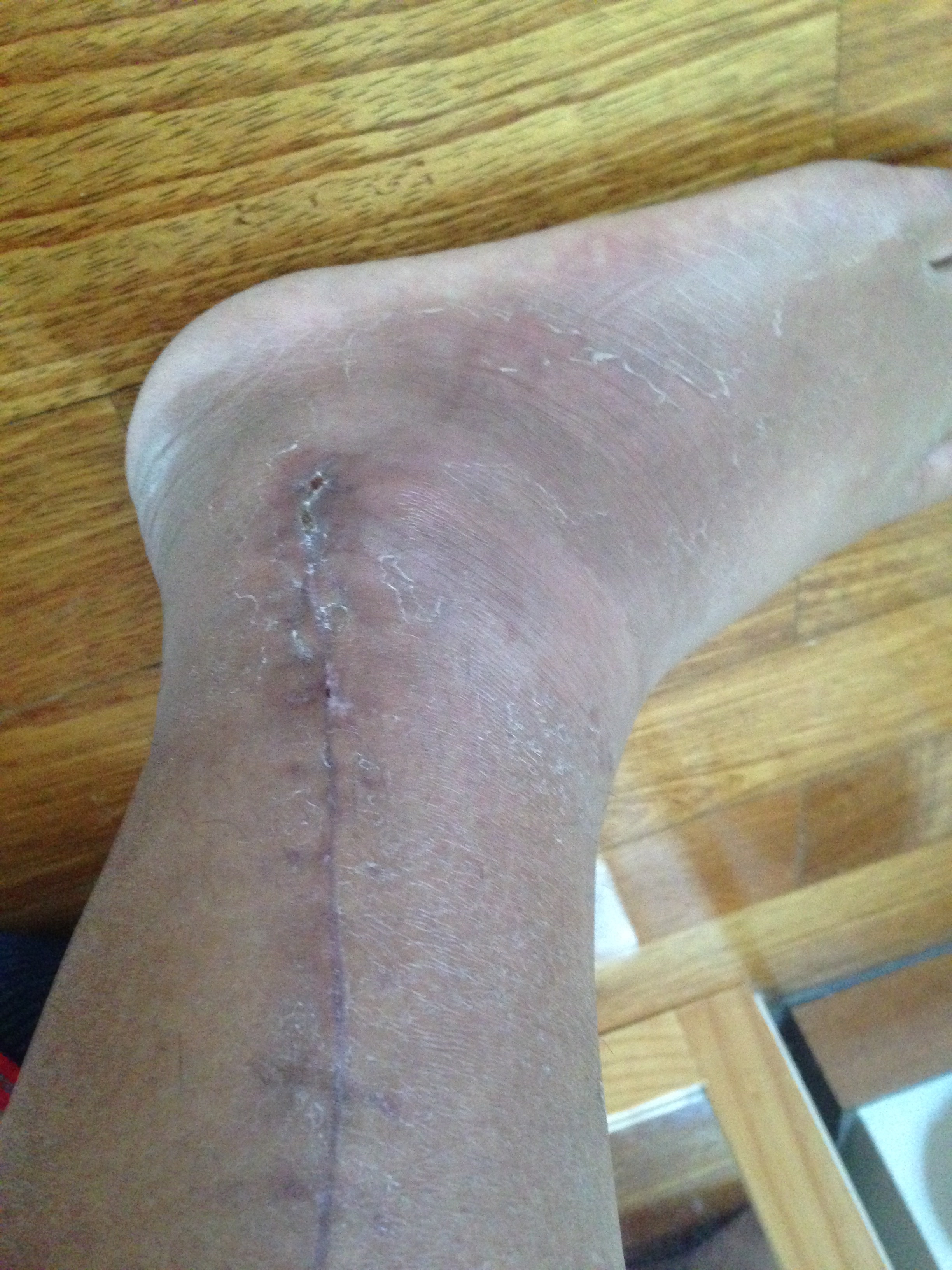 内側の傷の様子。すこしジュクジュクしている部分がありすこし心配、毎日洗って清潔にしよう。(ちなみにお風呂はどんどんはいっており、傷口も泡で撫でるように丁寧にあらっています。)