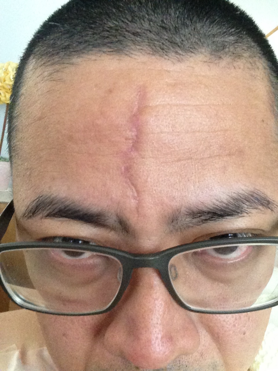 額の傷、光の当たり具合ではだいぶ目立たなくなってきていますが、凸凹もあり自分自身では気になるので完全に治したい、けど難しいかなぁー