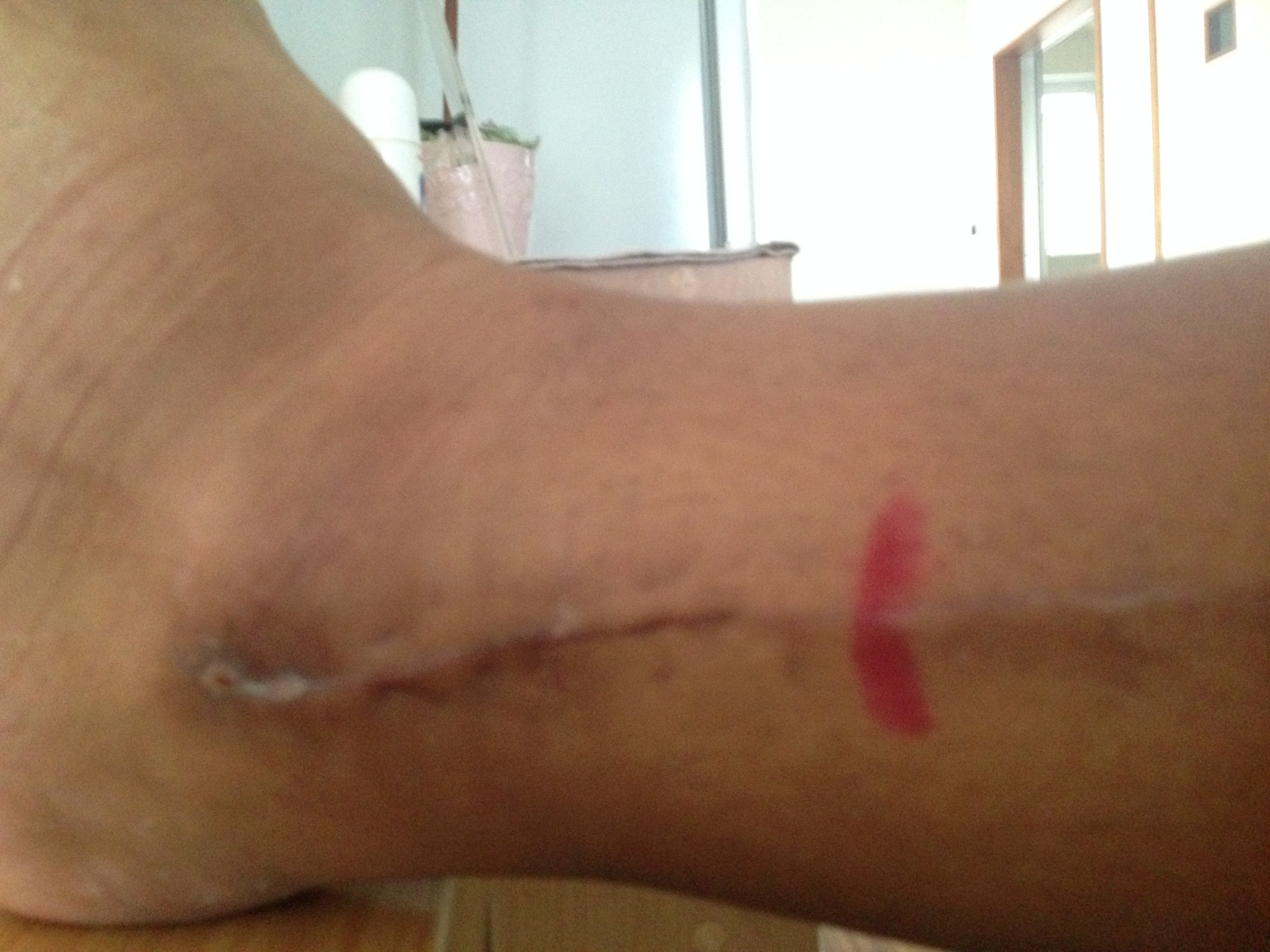 踵の内側で、印は超音波治療の時ここに当てるという印。