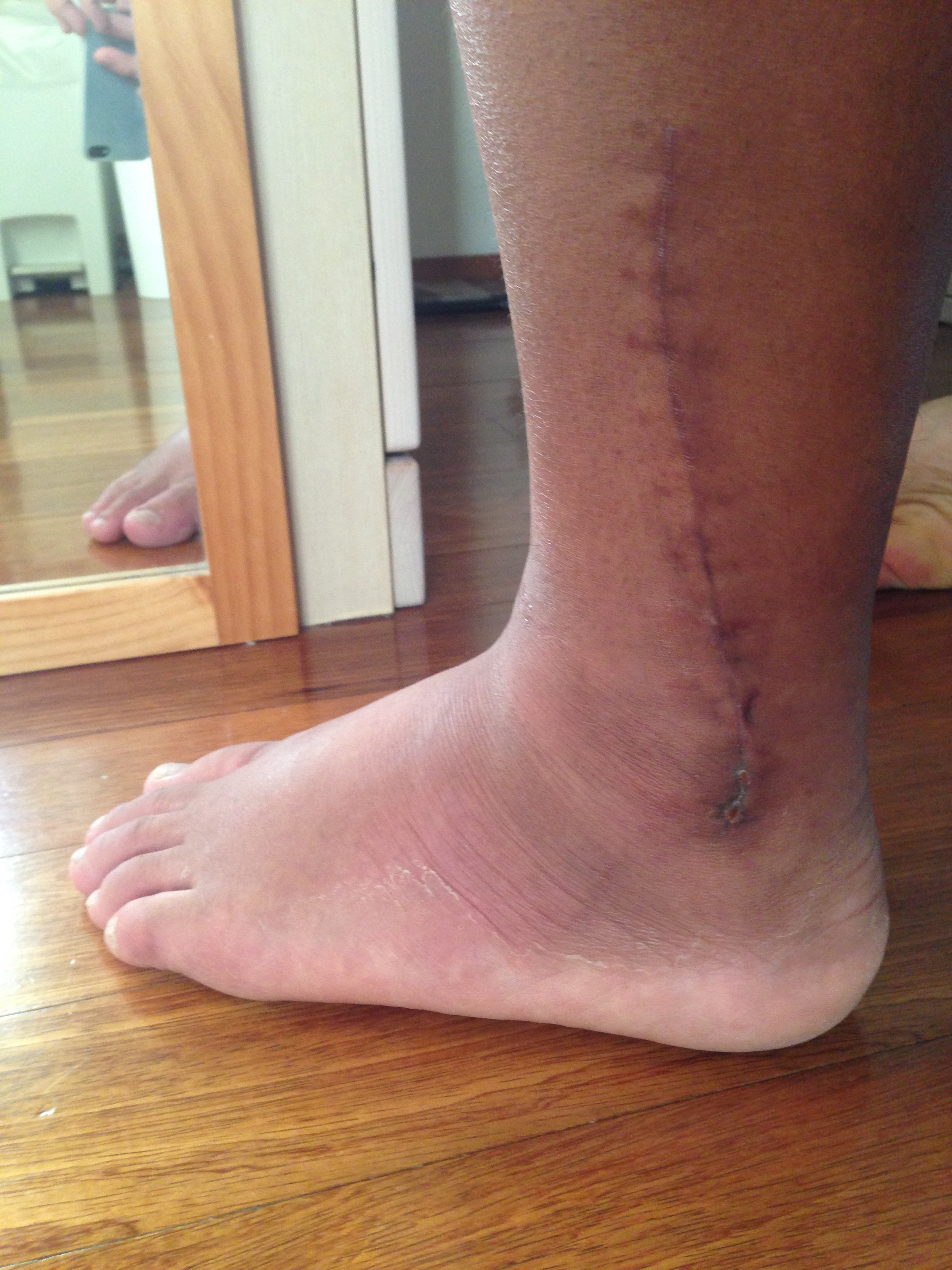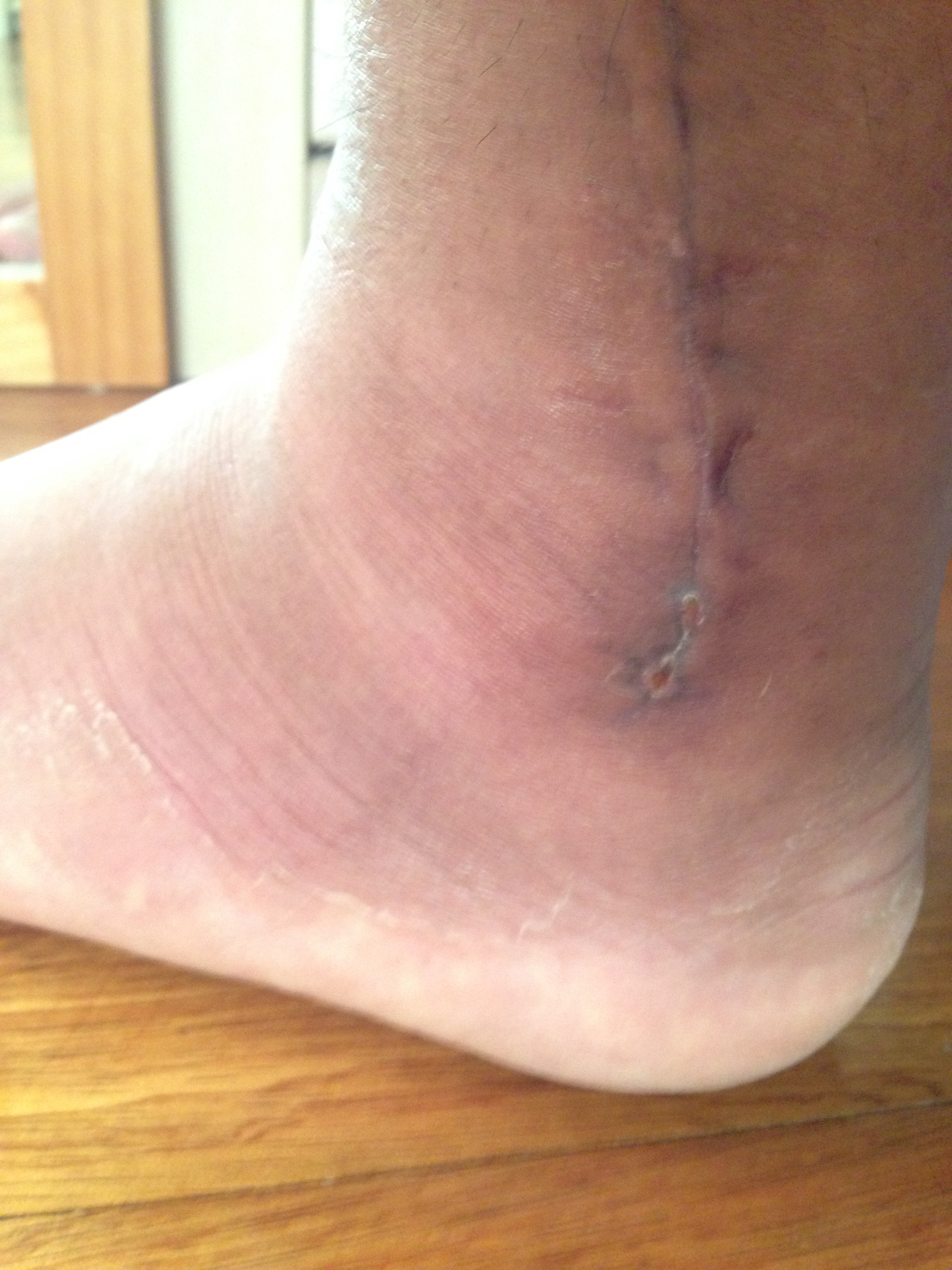 腓骨側の外側の様子、大分傷も良くなってますが、でこぼごしています。